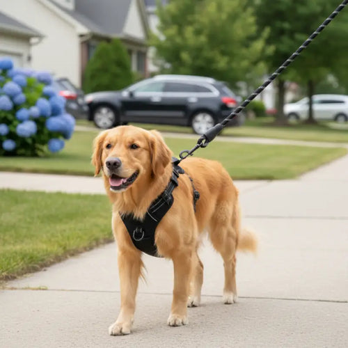 Un harnais répartit la traction sur une zone plus large du corps et soulage ainsi le cou et le dos de votre chien. Cela apporte plus de sécurité, réduit les risques de blessures et offre un meilleur contrôle, surtout pour les chiens qui apprennent encore à marcher calmement en laisse.